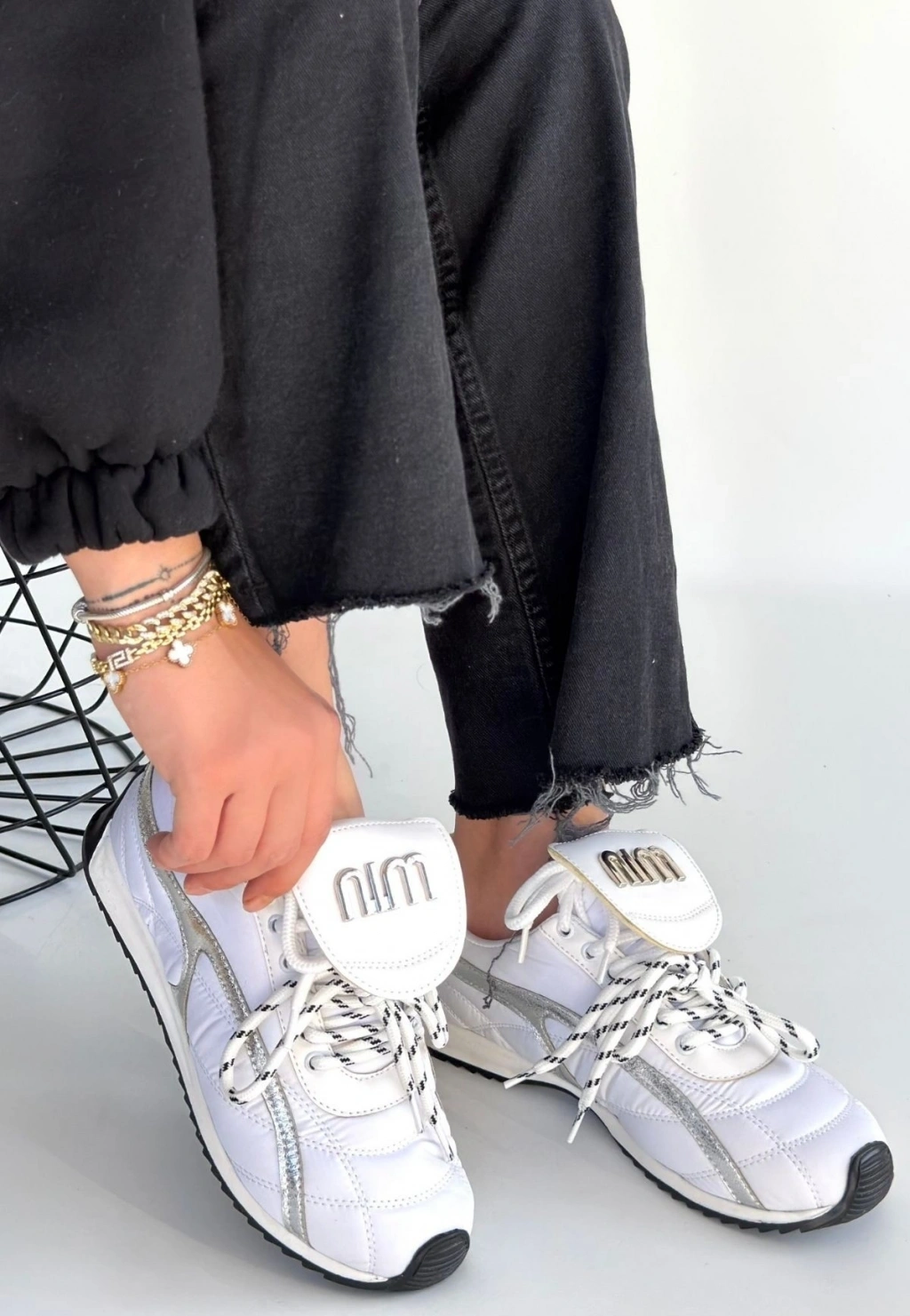 Rimay Beyaz Cilt Boncuk İşlemeli Spor Ayakkabı