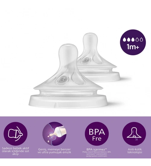 Doğal Tepkili Natural Response 2'Li Biberon Emziği No:3 1+ Ay