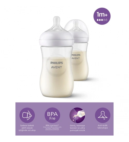 Doğal Tepkili Natural Response PP 2'Li Biberon Seti 260 ml 1+ Ay