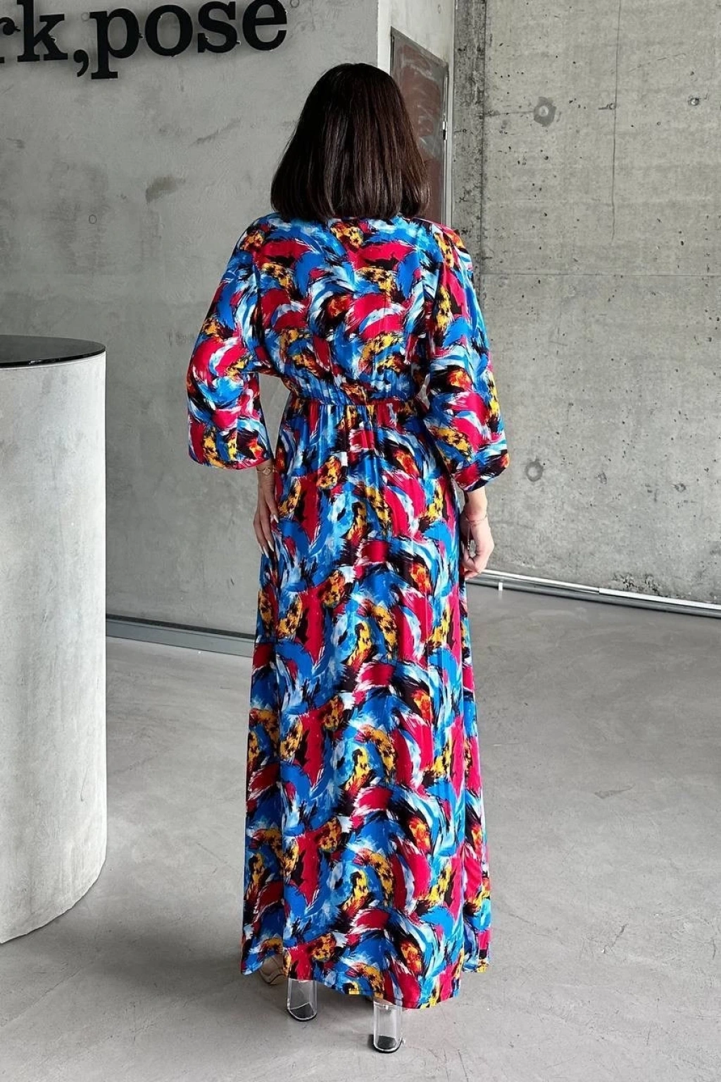 Modal yırtmaçlı elbise mavi pt