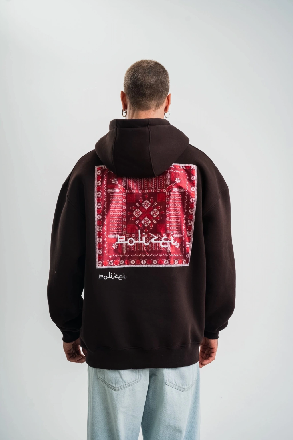 Erkek Oversize Üç İplik Kapüşonlu Sweat – Siyah Kol ve Etek Ribana Detaylı, Ön ve Sırt Baskılı, Kanguru Cepli Rahat Kalıp Model