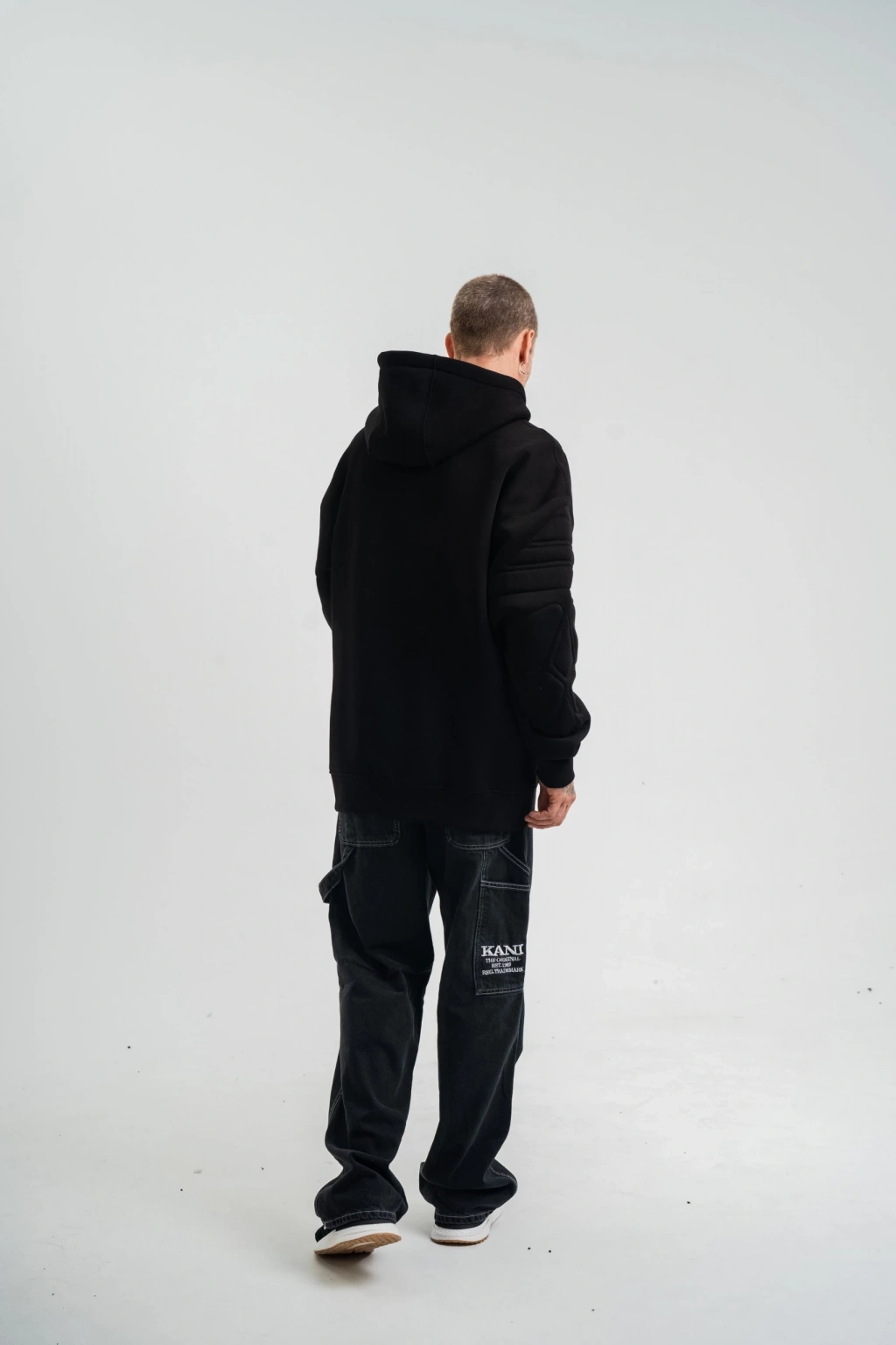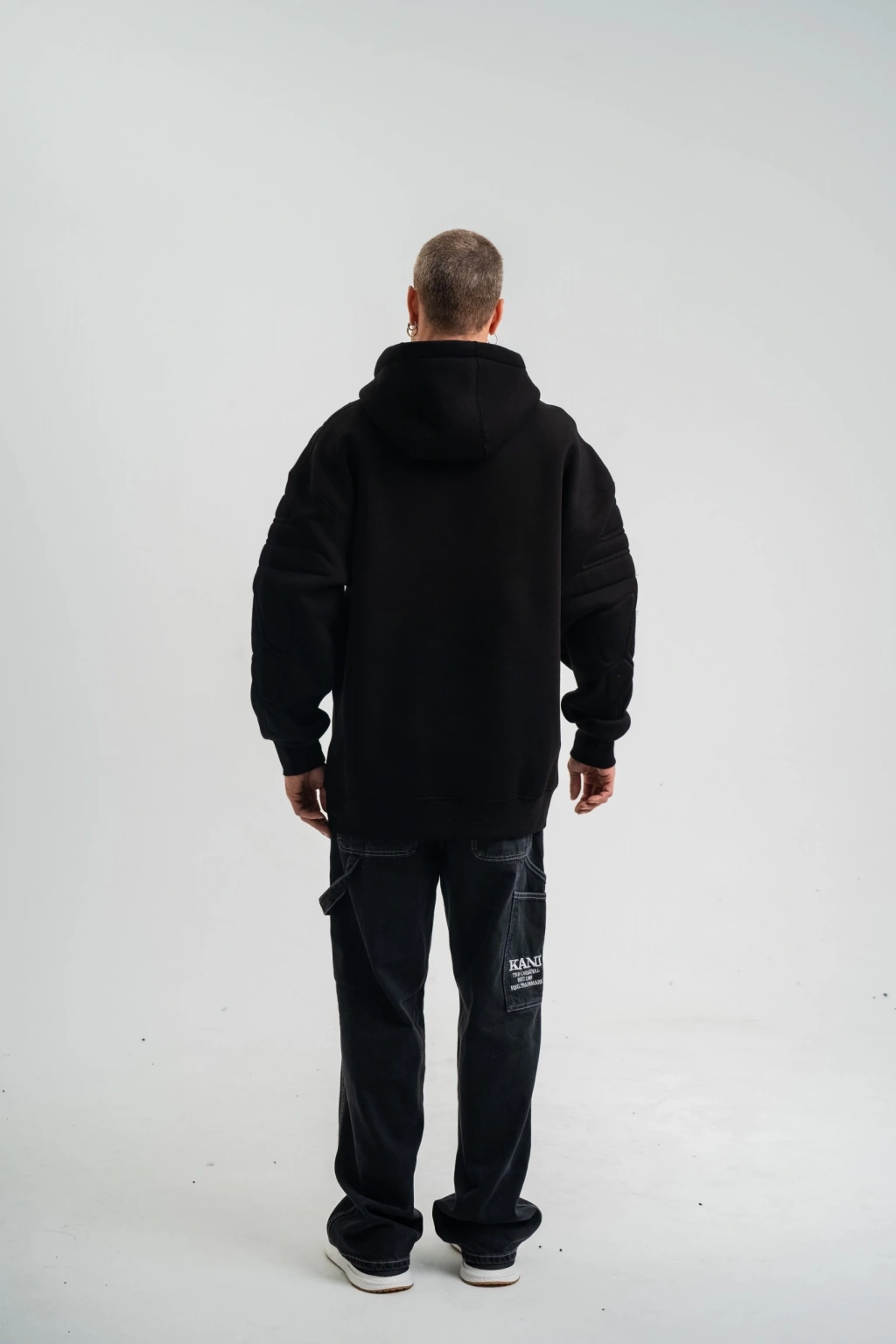 Erkek Premium Nakışlı Kapşonlu Sweatshirt Double Oversize Üç İplik Pamuklu - Siyah