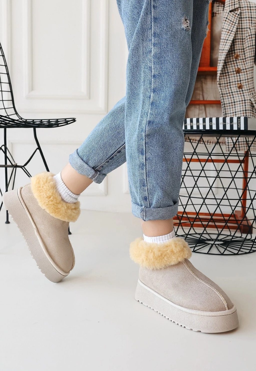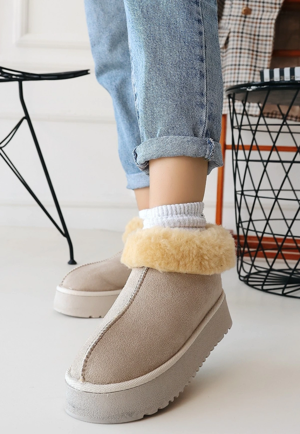 Jones Bej Cilt Bağcıklı Topuklu Bot