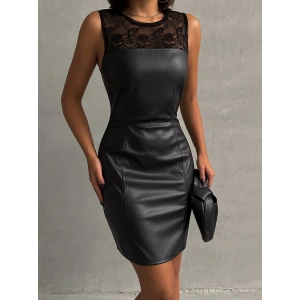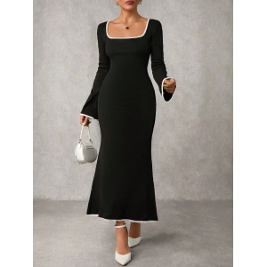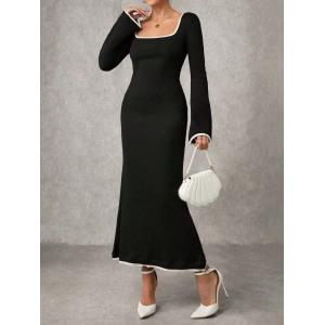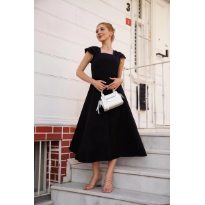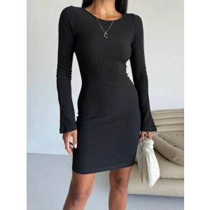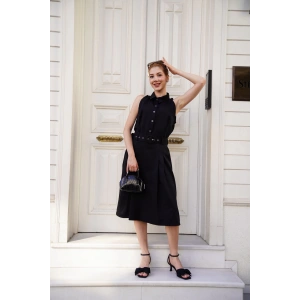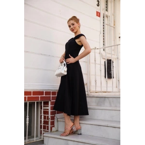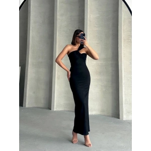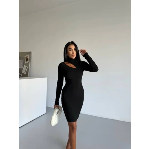 Boğazlı gögüs dekolteli elbise siyah f2333
