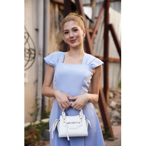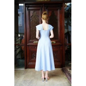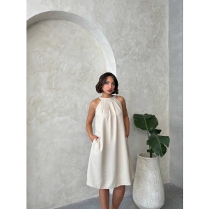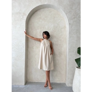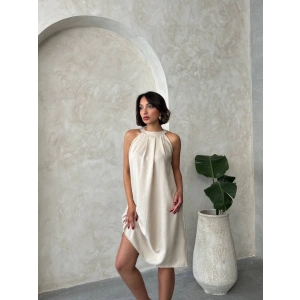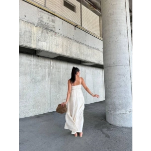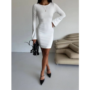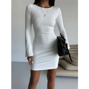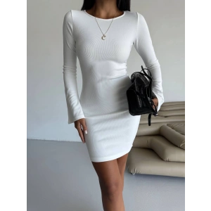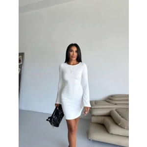 Boğazlı gögüs dekolteli elbise beyaz f2333