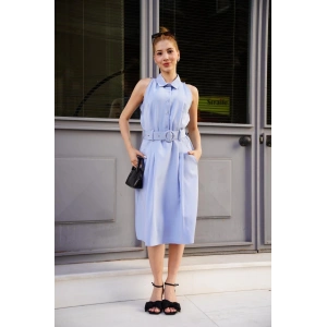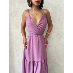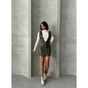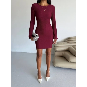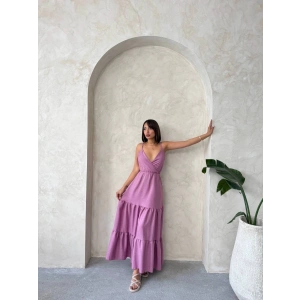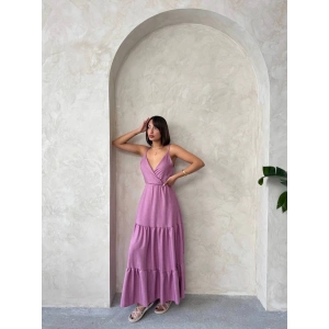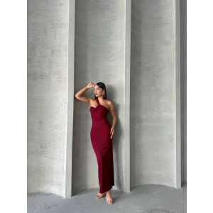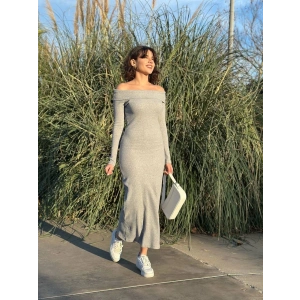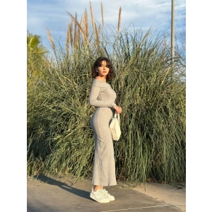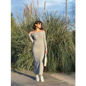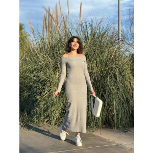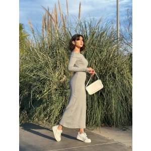 Madonna yaka uzun elbise şardonlu kumaş gri w3753
