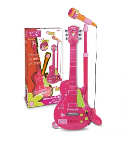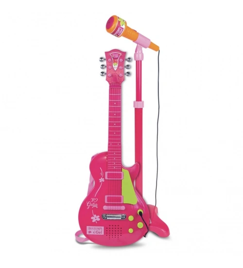 Elektronik Ayaklı Mikrofonlu Pembe Gitar
