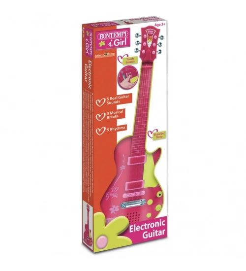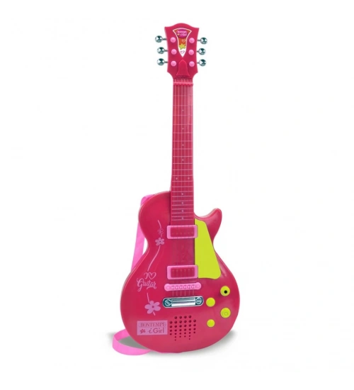 Elektronik Tuşlu ve Telli Askılı Pembe Gitar