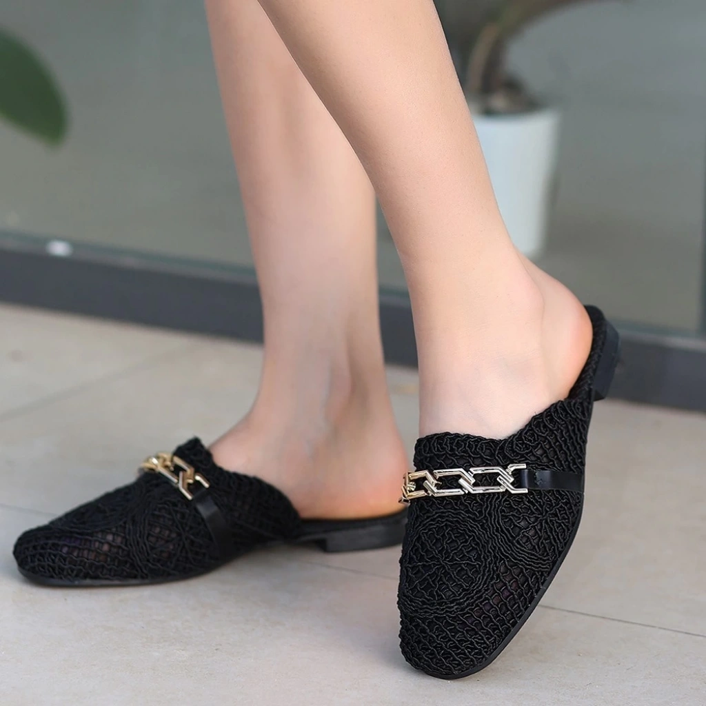 Caren Siyah Cilt Topuklu Terlik