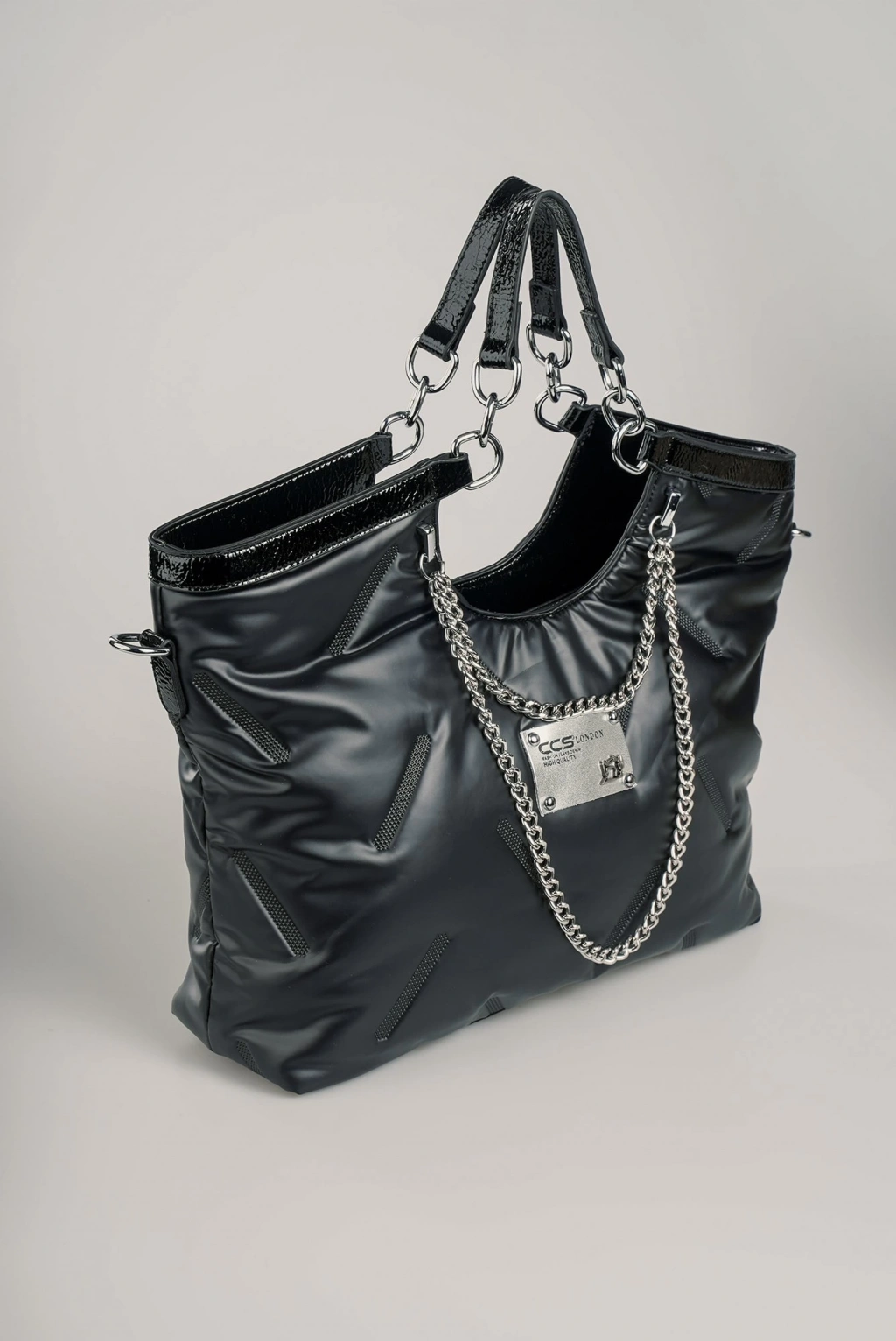 Kapaklı kapitone siyah cilt çanta