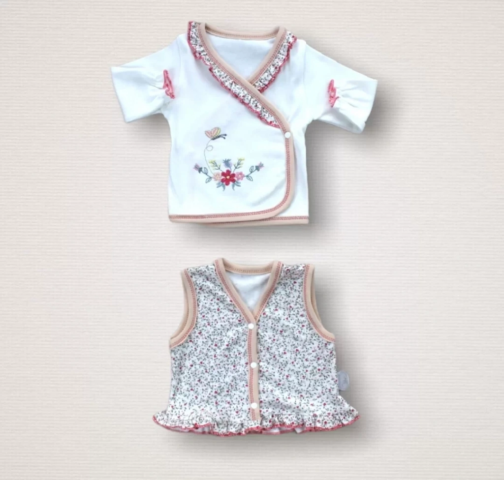 Erguvan Nakışlı Kız Bebek 10lu Zıbın Takımı Hastane Çıkışı Nar Çiçeği