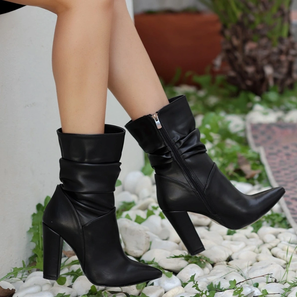 Detay: Topuklu Yandan Fermuarlı Körüklü
