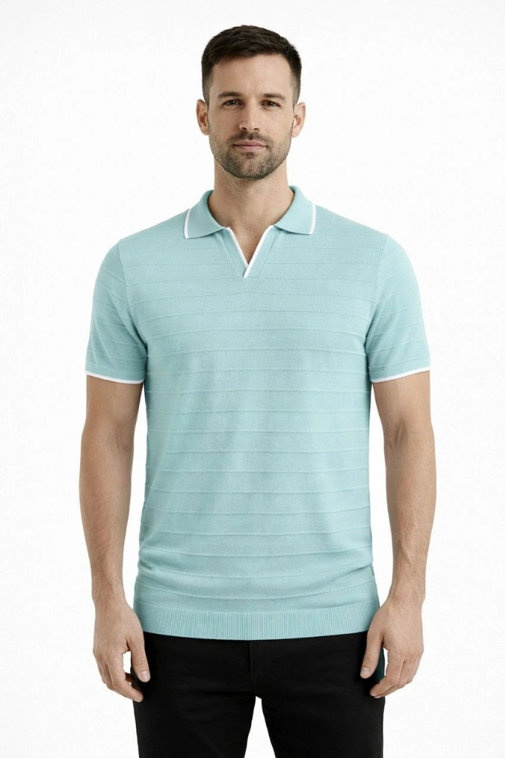 Erkek 2’li Paket Triko Yakalı Düğmesiz Açık Yaka Fitilli Kısa Kollu Regular Fit Tişört - Beyaz & Mint Yeşili