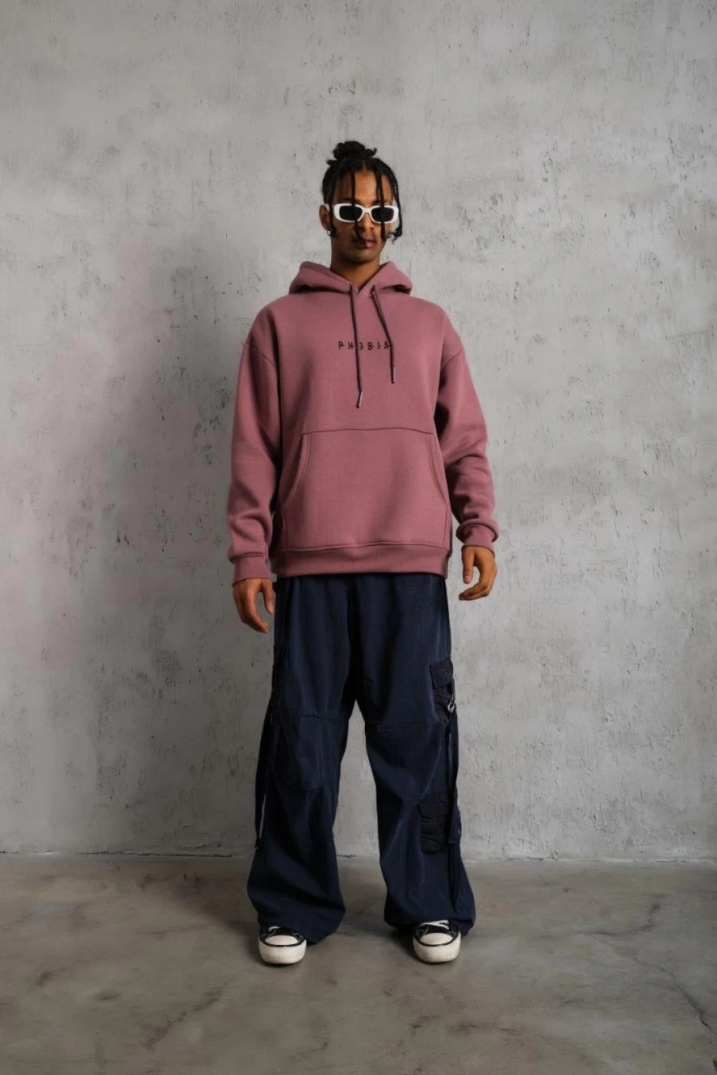 Erkek Double Oversize Kapüşonlu Sweatshirt 3 İplik Pamuklu Göğüs Nakışlı Premium Kalite – Antrasit