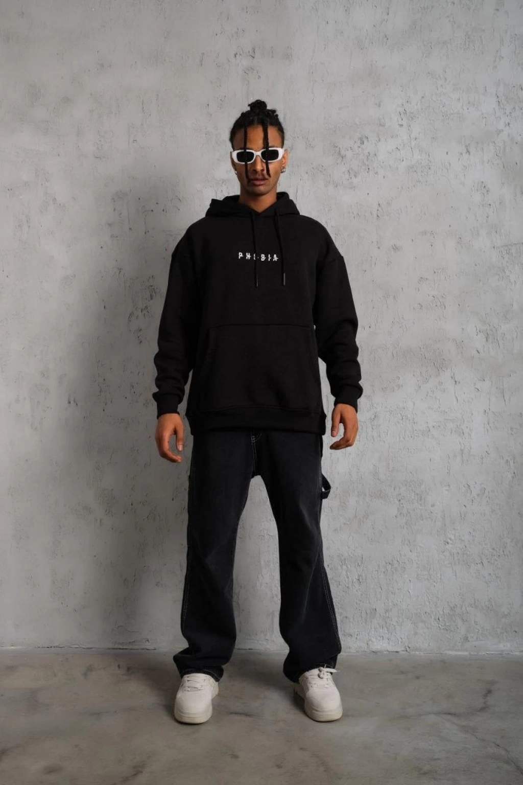 Erkek Double Oversize Kapüşonlu Sweatshirt 3 İplik Pamuklu Göğüs Nakışlı Premium Kalite – Siyah