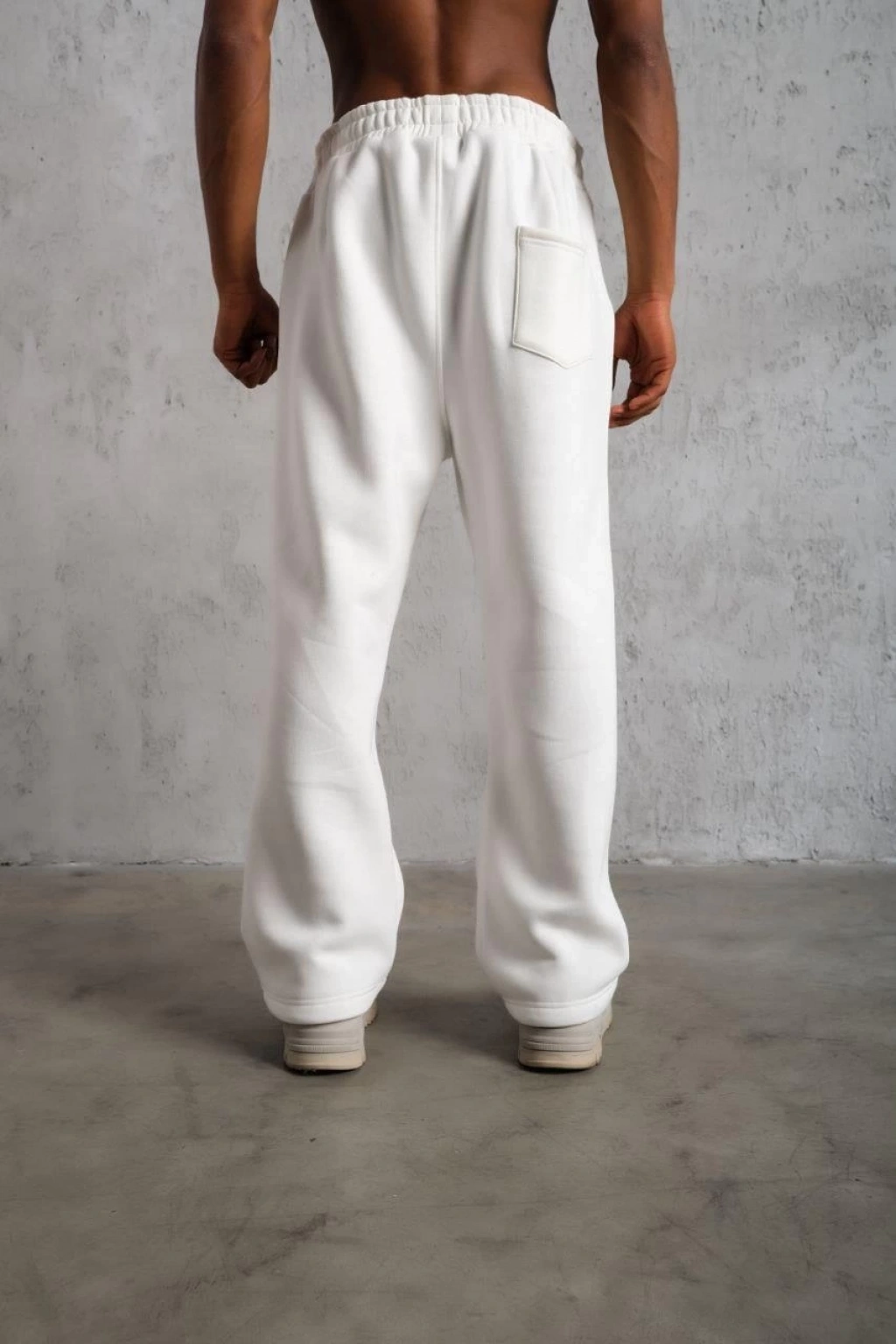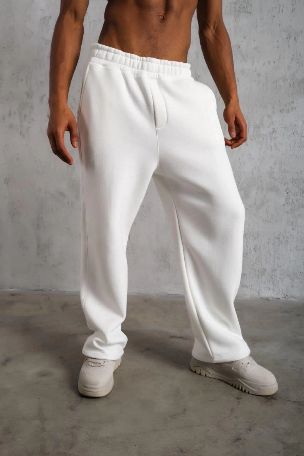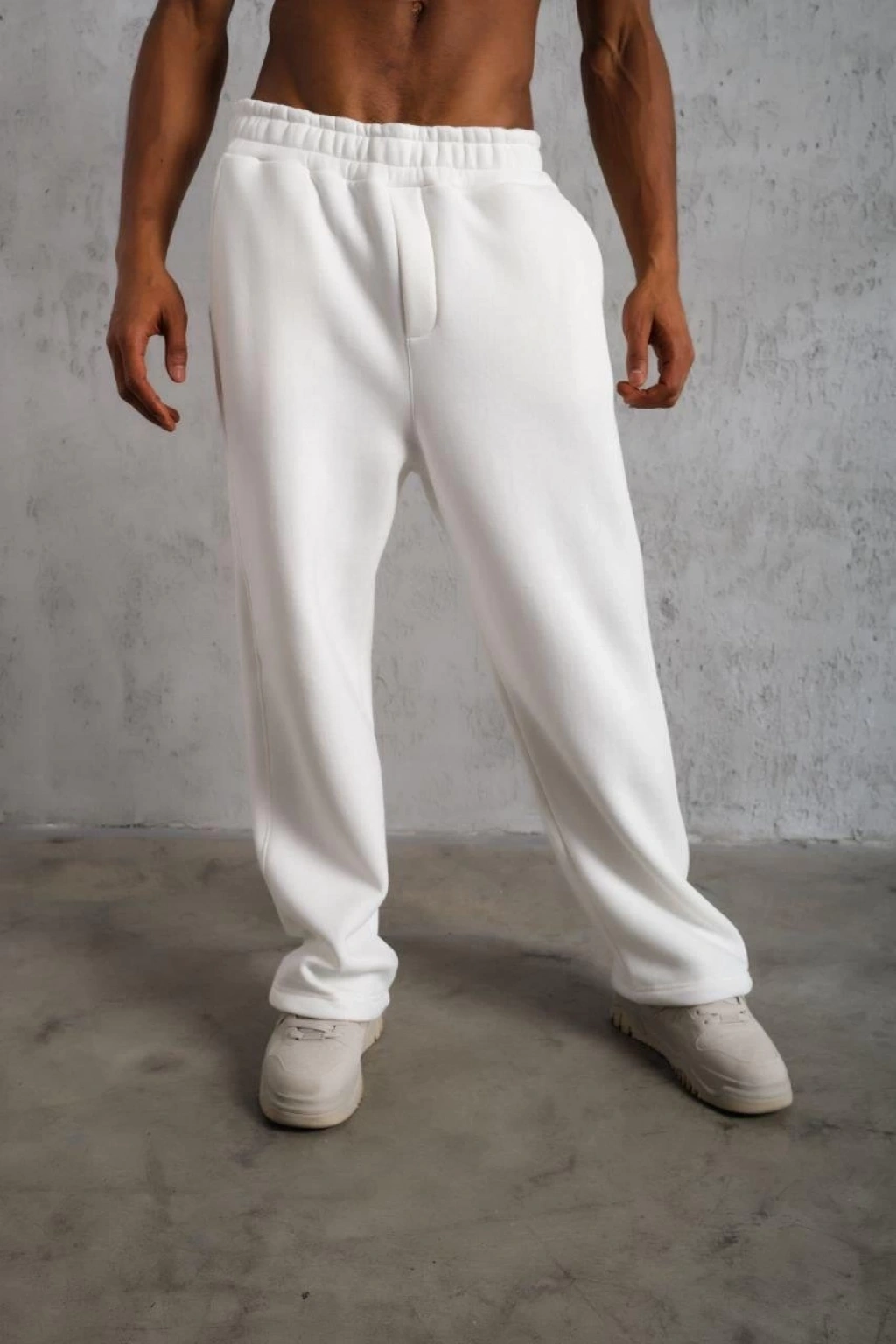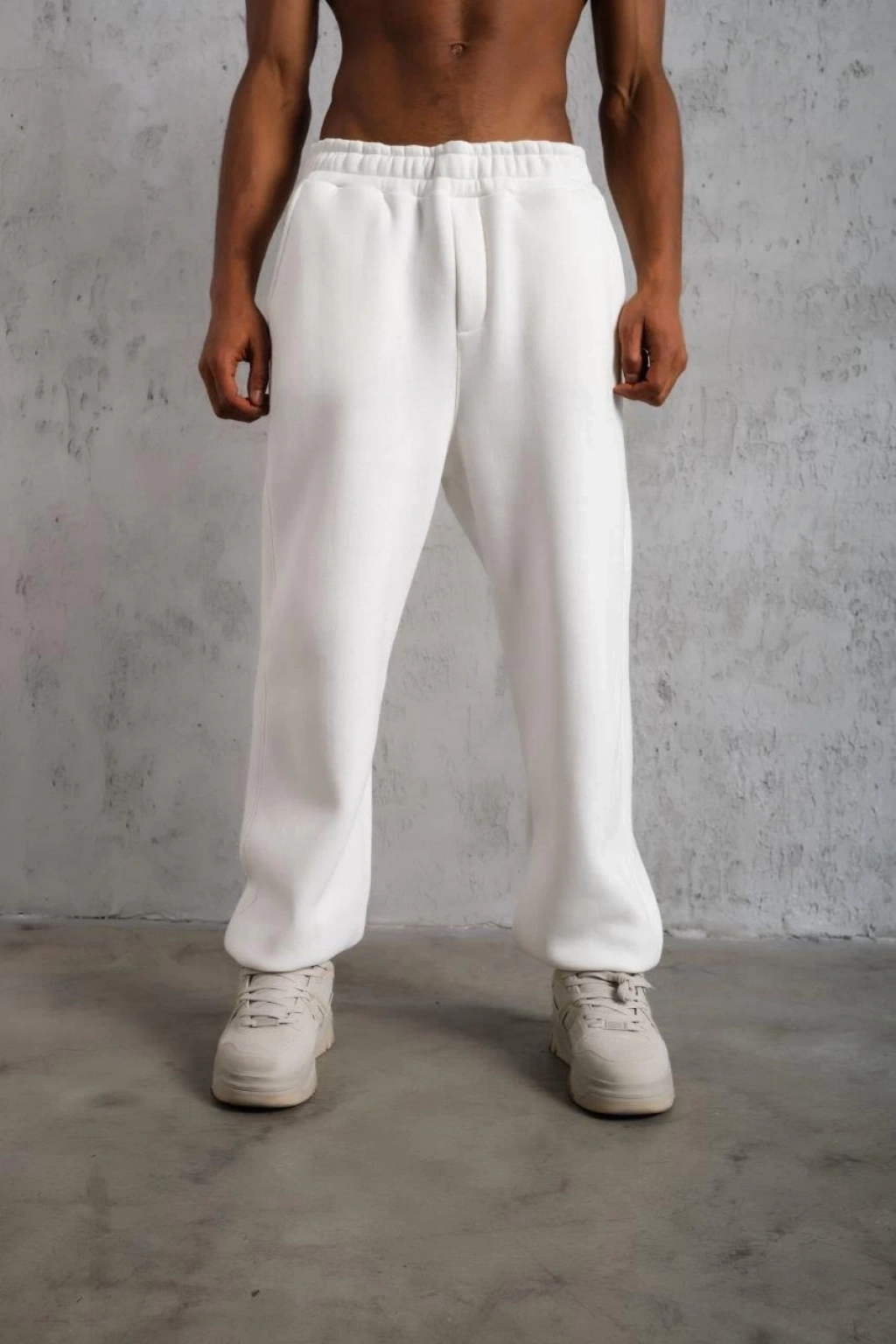 Erkek Üç iplik Kışlık Pamuklu Ovarsize Bağcıklı Düz Paça Cepli Eşofman Altı Spor Rahat Model - Beyaz