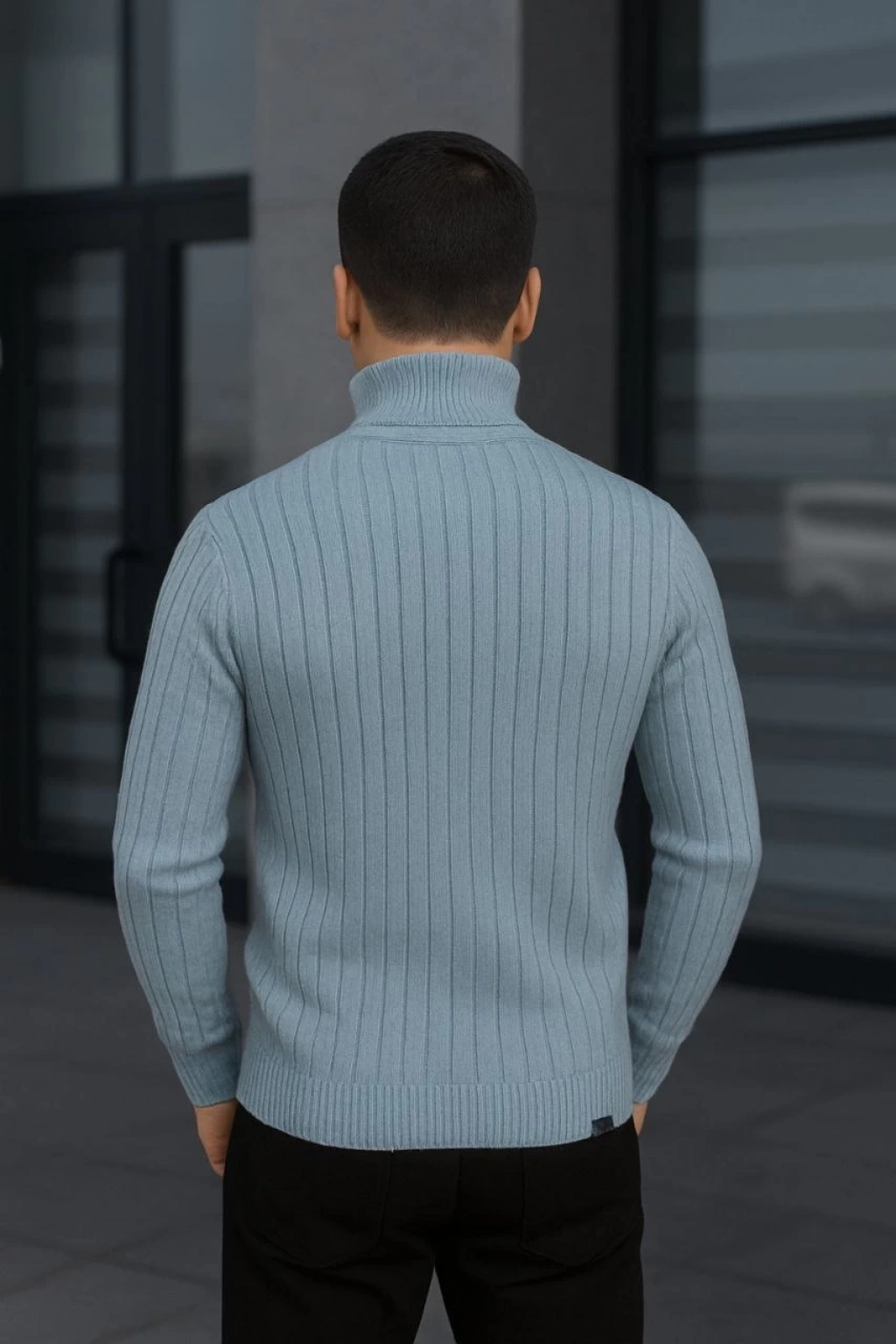Erkek Yarım Boğaz Triko Kazak yumuşak dokulu Pamuklu ince Dokuma, uzun kollu Rahat Regular kalıp - İndigo