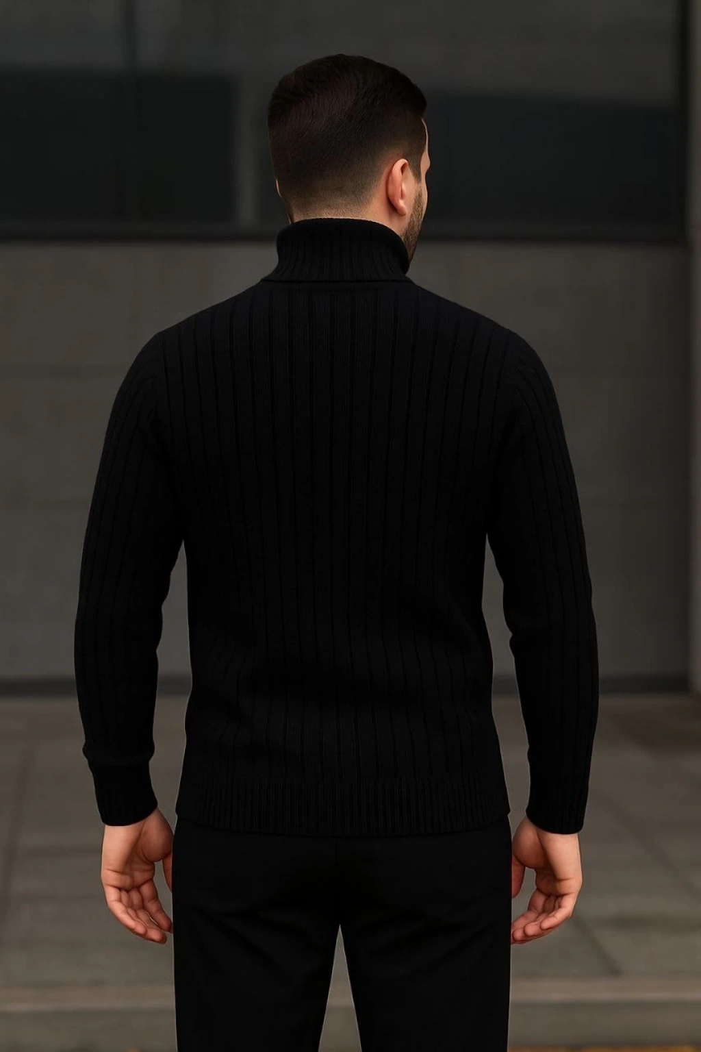 Erkek Yarım Boğaz Triko Kazak yumuşak dokulu Pamuklu ince Dokuma, uzun kollu Rahat Regular kalıp - Siyah
