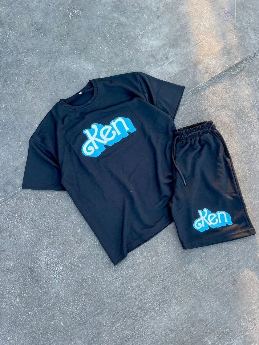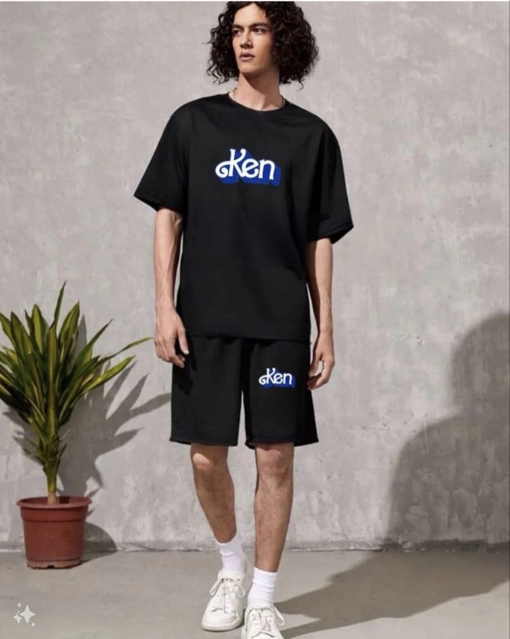 Erkek Şortlu Takım – Oversize İki İplik Kumaş, Ön & Arka Dijital Baskılı Tişört ve Lastikli Cepli Şort, Yazlık Günlük Spor Set - Mavi