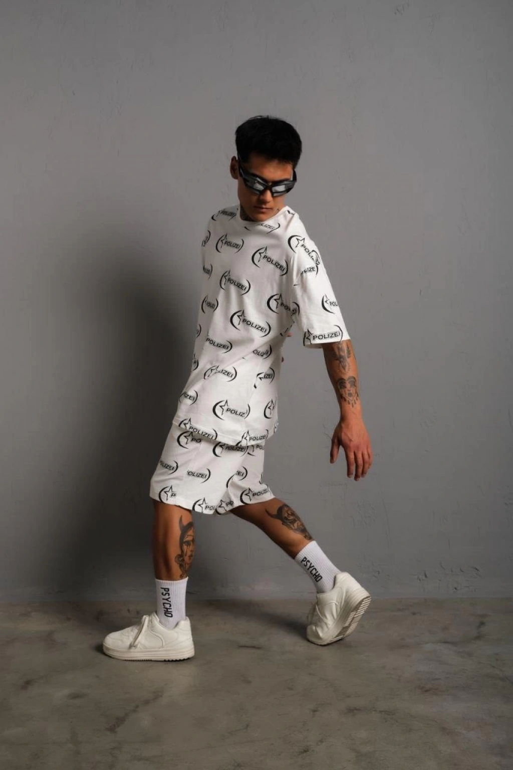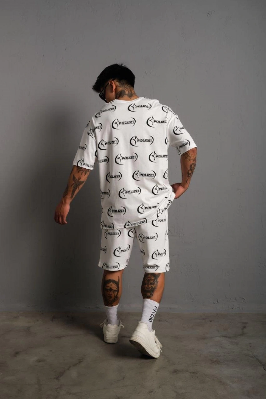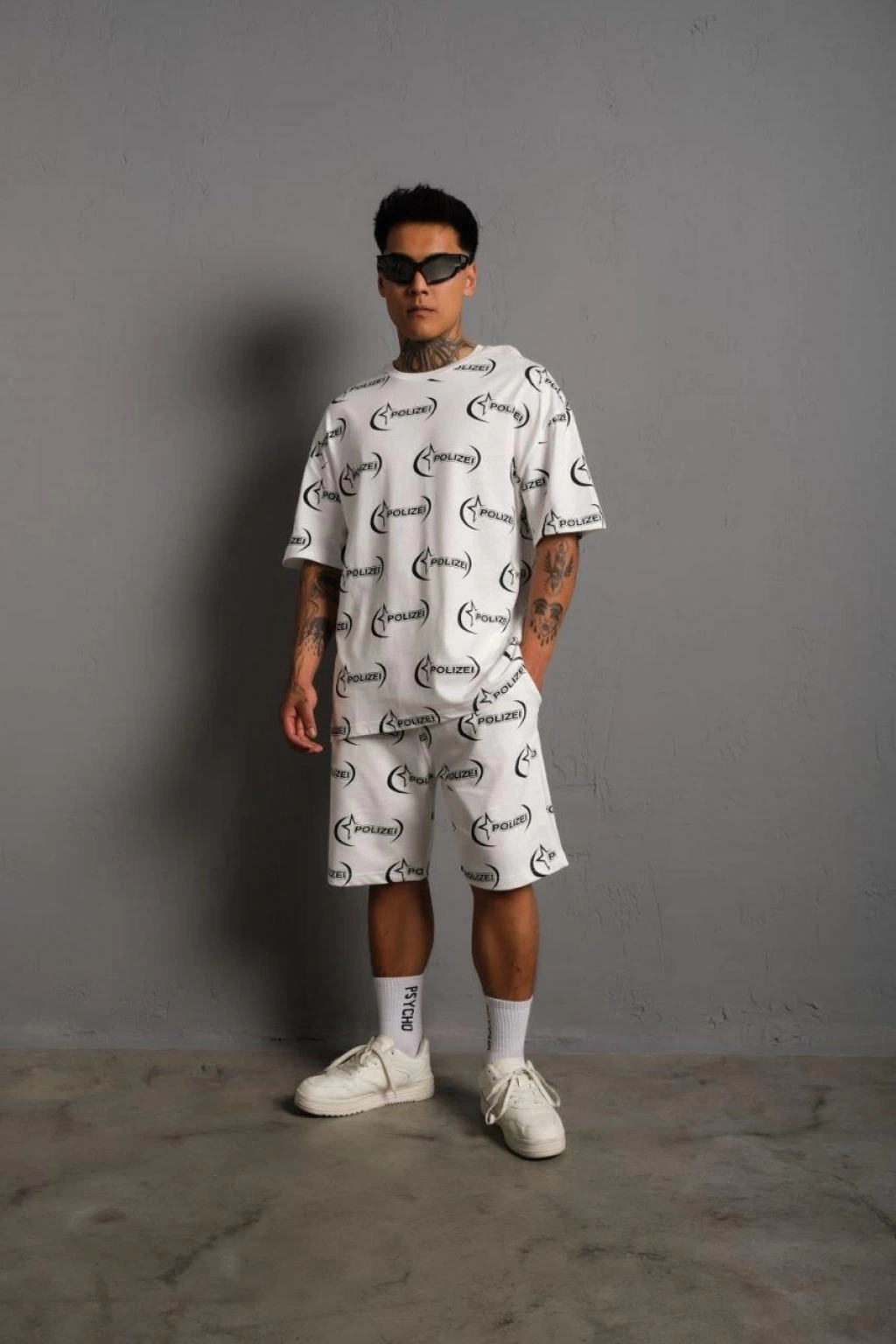 Erkek Nakış İşlemeli Şortlu Takım - Beyaz