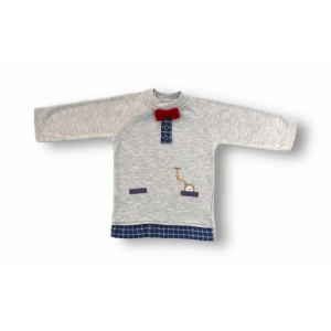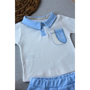 3-6 6-9 9-12 Ay Melanjlı Uzun Kollu Sweatli 2Li Erkek Bebek Takımı Mavi