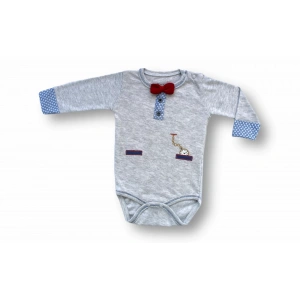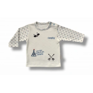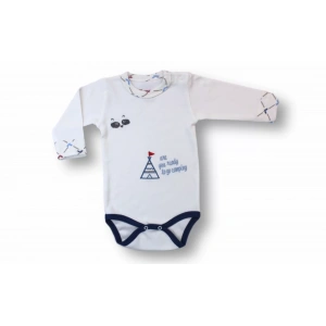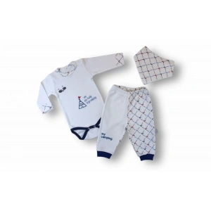3-6 6-9 9-12 Ay My Camping Nakışlı Bandajlı Uzun Kollu Zıbınlı 3Lü Erkek Bebek Takımı Ekru