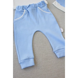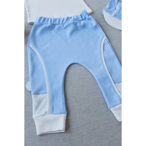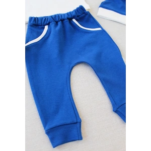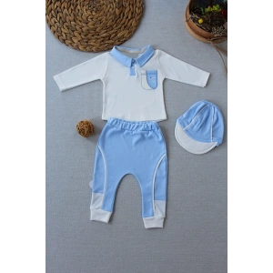3-6 6-9 9-12 Ay Efendi Nakışlı Cep Şapkalı Uzun Kollu Sweat 3Lü Erkek Bebek Takımı Mavi