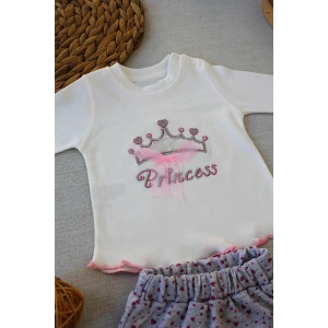 3-6 6-9 9-12 Ay My Prince Nakışlı Şapkalı Kısa Kollu Sweatli 3Lü Erkek Bebek Takımı Ekru
