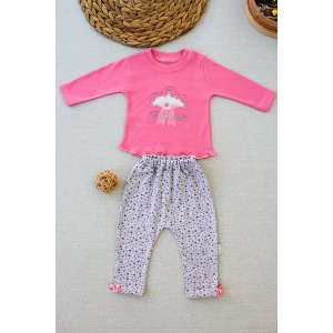 3-6 6-9 9-12 Ay Full Star Nakışlı Şapkalı Uzun Kollu Sweat 3Lü Erkek Bebek Takımı Fuşya
