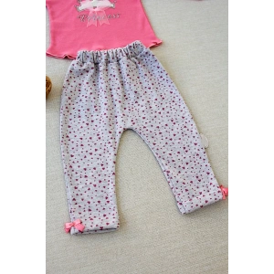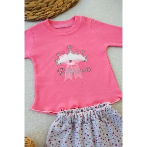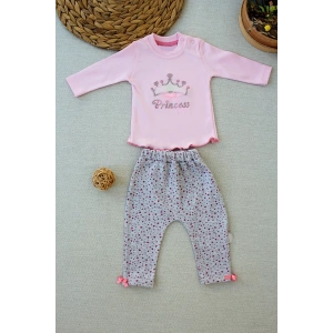 3-6 6-9 9-12 Ay Full Star Nakışlı Şapkalı Uzun Kollu Sweat 3Lü Erkek Bebek Takımı Pembe
