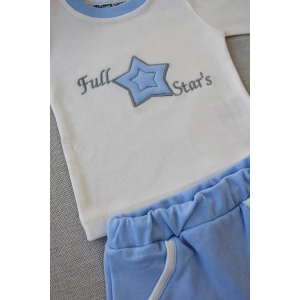 1-2-3 Yaş Topçu Erkek Çocuk Baskılı Şortlu Kısa Kollu Tişört 2Li Erkek Bebek Takımı Mavi