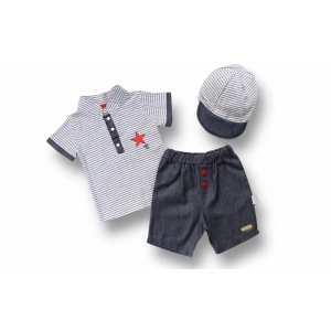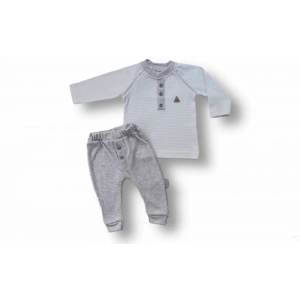 6-9 9-12 12-18 Ay Vip Yaka Şapkalı Kısa Kollu Sweat 3Lü Erkek Bebek Takımı Gri