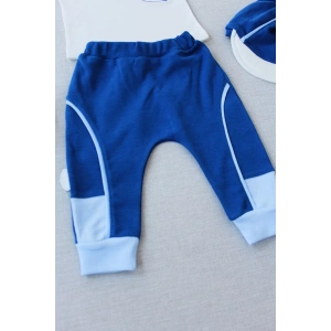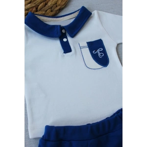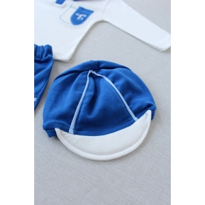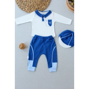 3-6 6-9 9-12 Ay Efendi Nakışlı Cep Şapkalı Uzun Kollu Sweat 3Lü Erkek Bebek Takımı İndigo