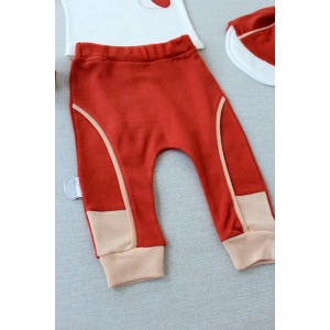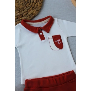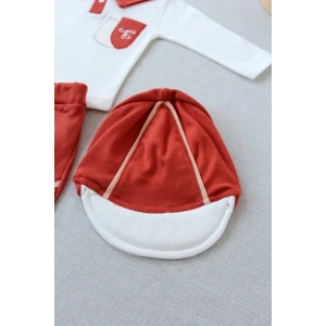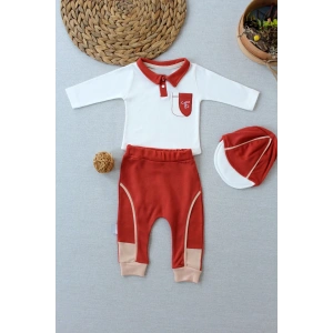3-6 6-9 9-12 Ay Efendi Nakışlı Cep Şapkalı Uzun Kollu Sweat 3Lü Erkek Bebek Takımı Kiremit