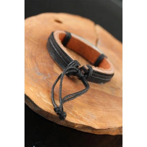 Siyah Sonsuzluklu Metal Aksesuarlı Kahverengi Deri Erkek Bileklik