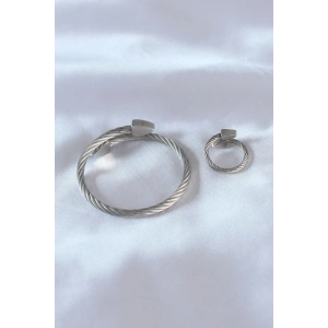 Çelik Gümüş Renk Sıkı Burgu Model Erkek Bileklik Yüzük Seti