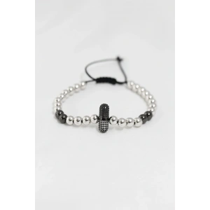 Füme Gümüş Renk Çelik Zirkon Objeli Asansörlü Bileklik