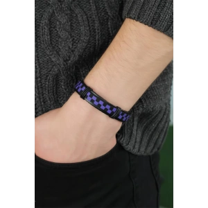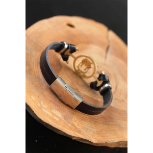 Çelik Aksesuarlı Siyah Renk Deri Erkek Bileklik