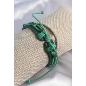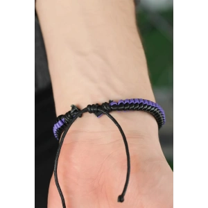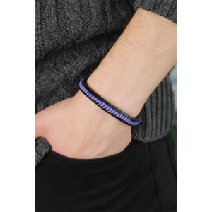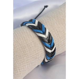Mavi Beyaz Renk Siyah Deri İpli Erkek Bileklik