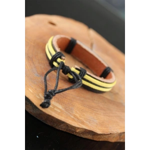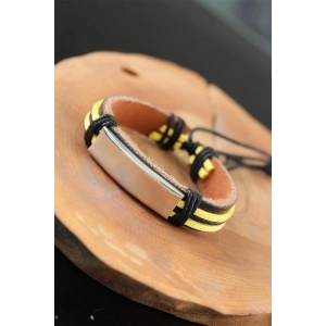 Metal Aksesuarlı Sarı Siyah Renk Deri Erkek Bileklik