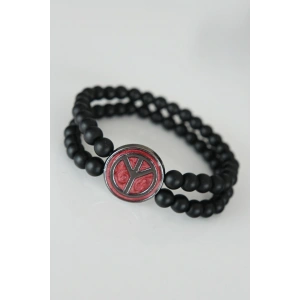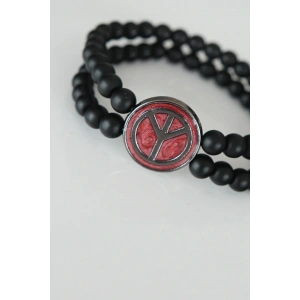 Barış Figürlü Bordo Renk Füme Metal Aksesuarlı Çift Sıra Oniks Doğal Taş Erkek Bileklik