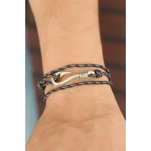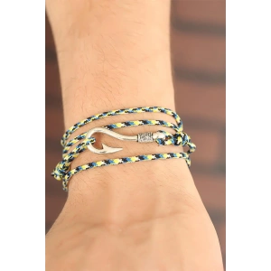 Sarı Mavi Çizgi Desenli Gümüş Renk Metal Kancalı Erkek Bileklik