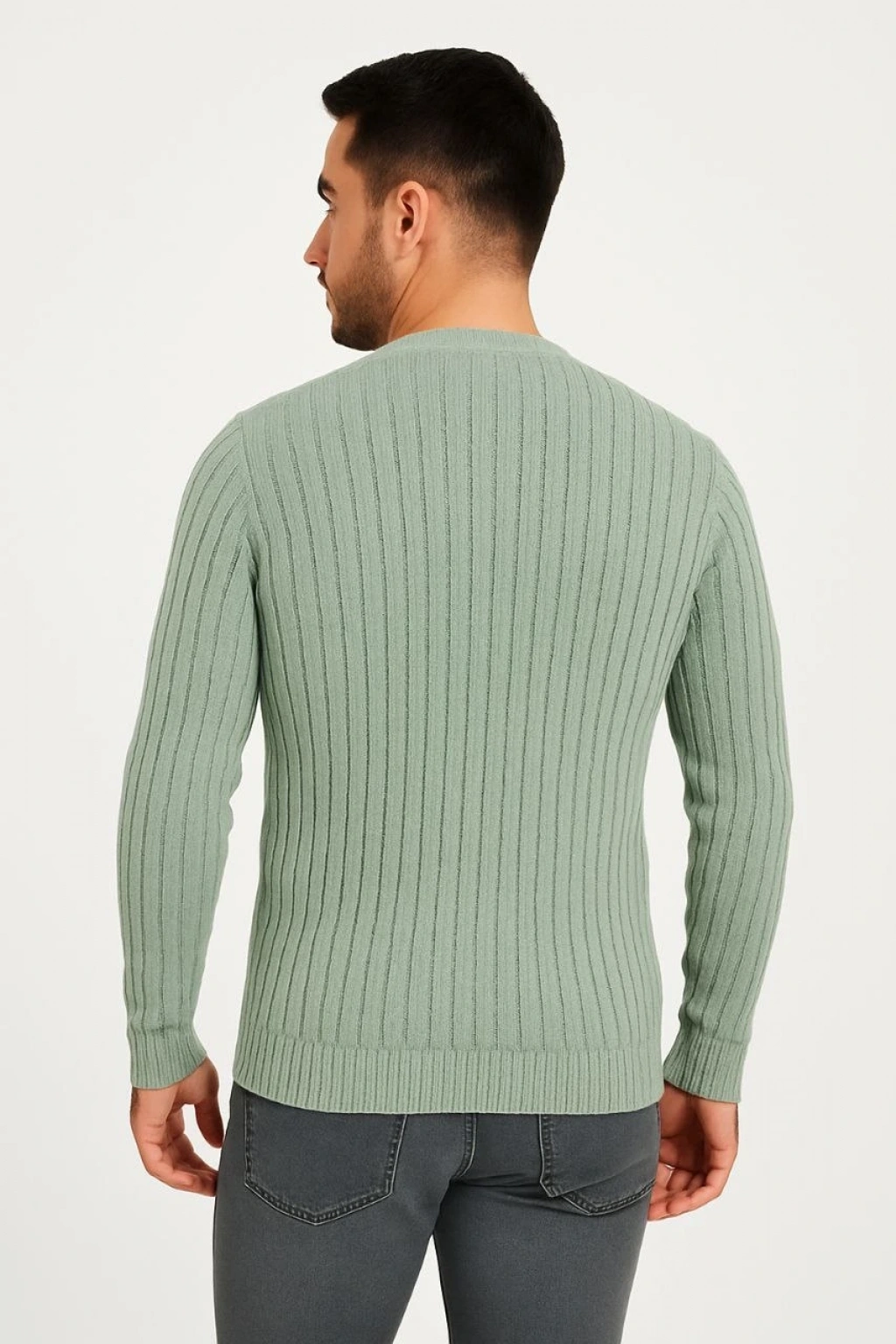 Erkek Fitilli Triko Kazak 2’li Set – Siyah & Beyaz, Kalın Dokuma Pamuklu Regular Fit Bisiklet Yaka Uzun Kollu Rahat Kışlık Kazak Kombini