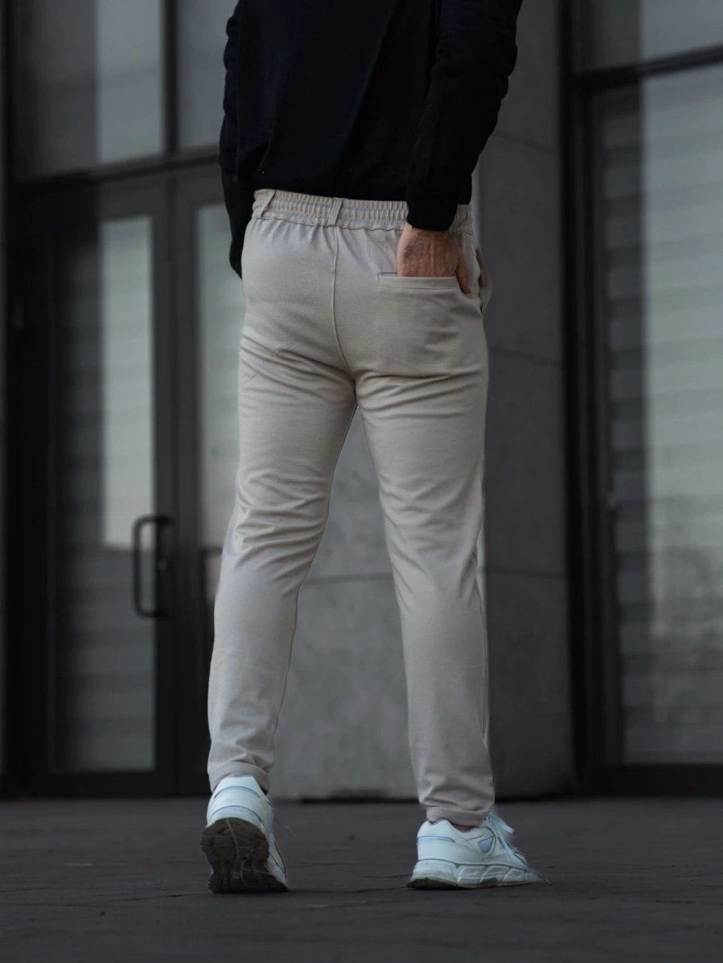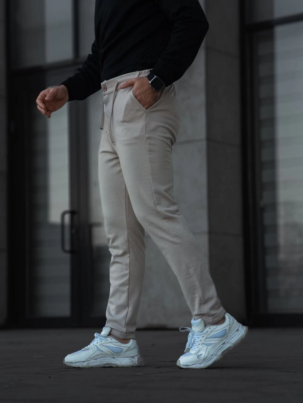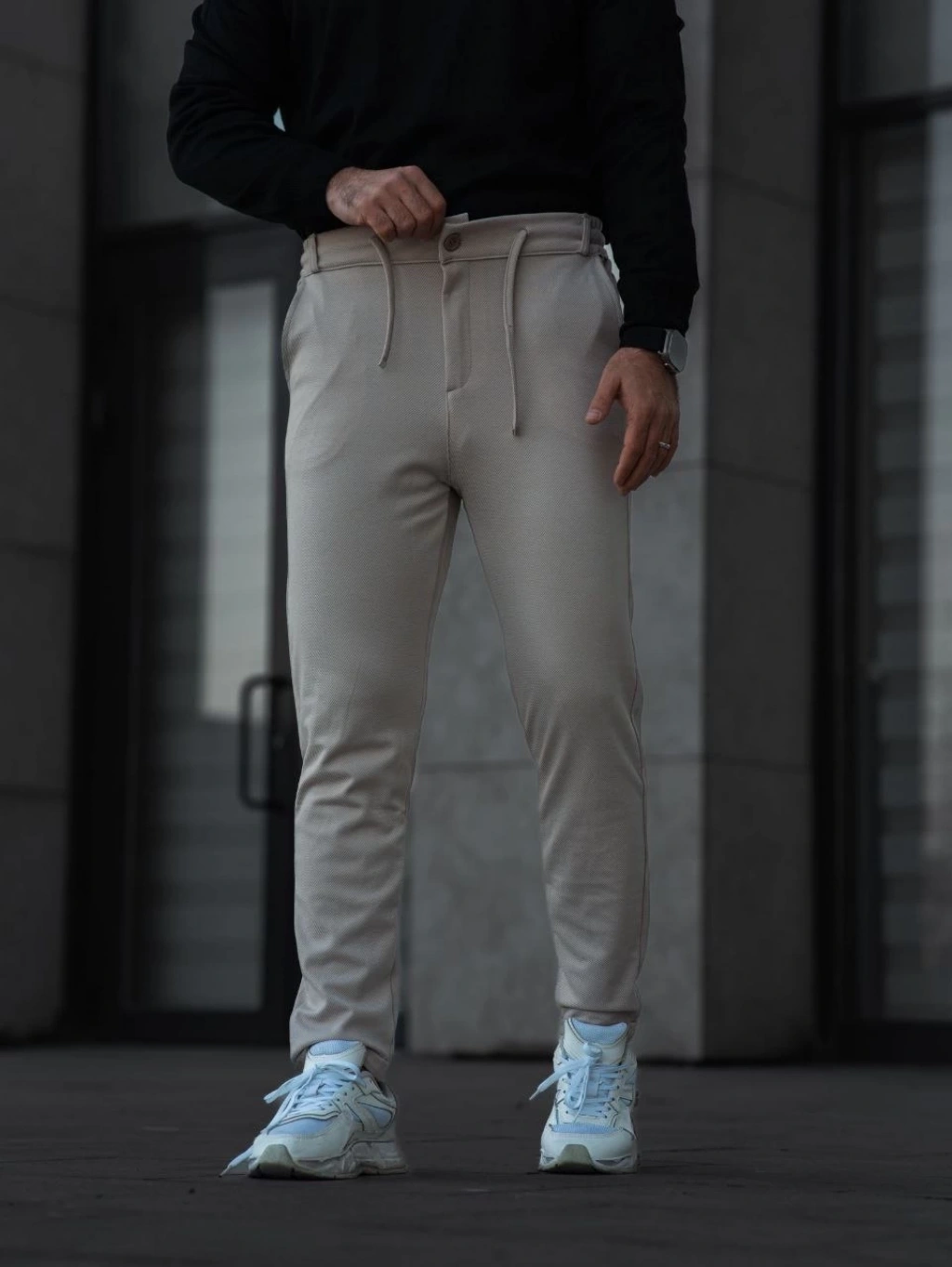 Erkek Cizgili Dokuma Krep Jogger Buggy Pantalon Rahat kalıp - Beyaz
