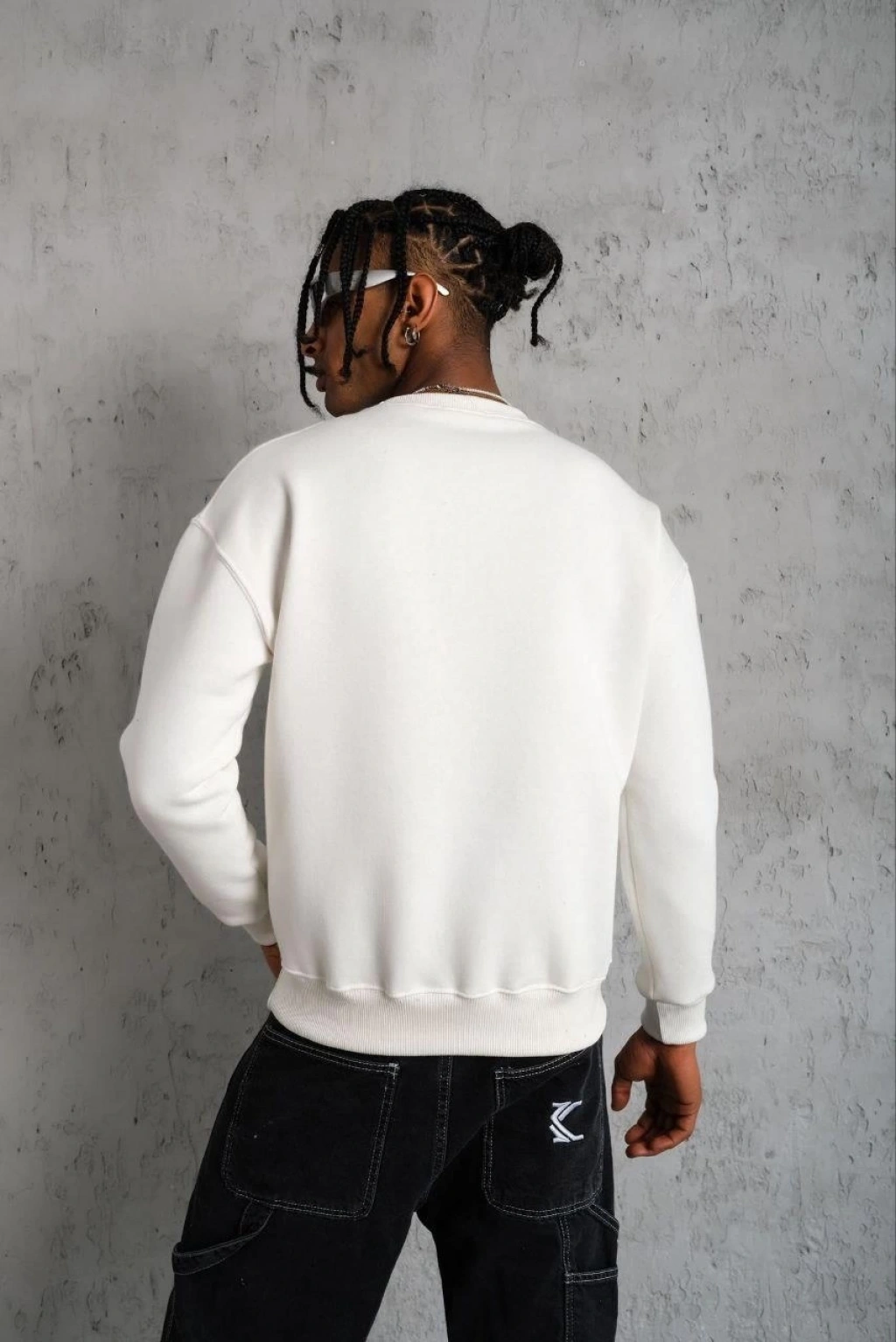 Erkek Patlı Yaka Üç İplik Pamuklu Sweatshirt Double Oversize Rahat Kalıp Günlük Kullanım – Bej