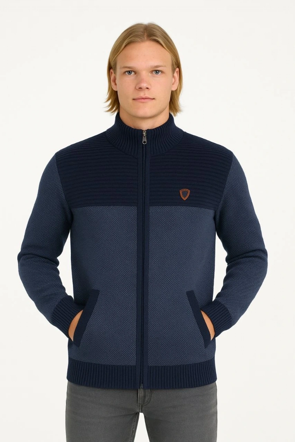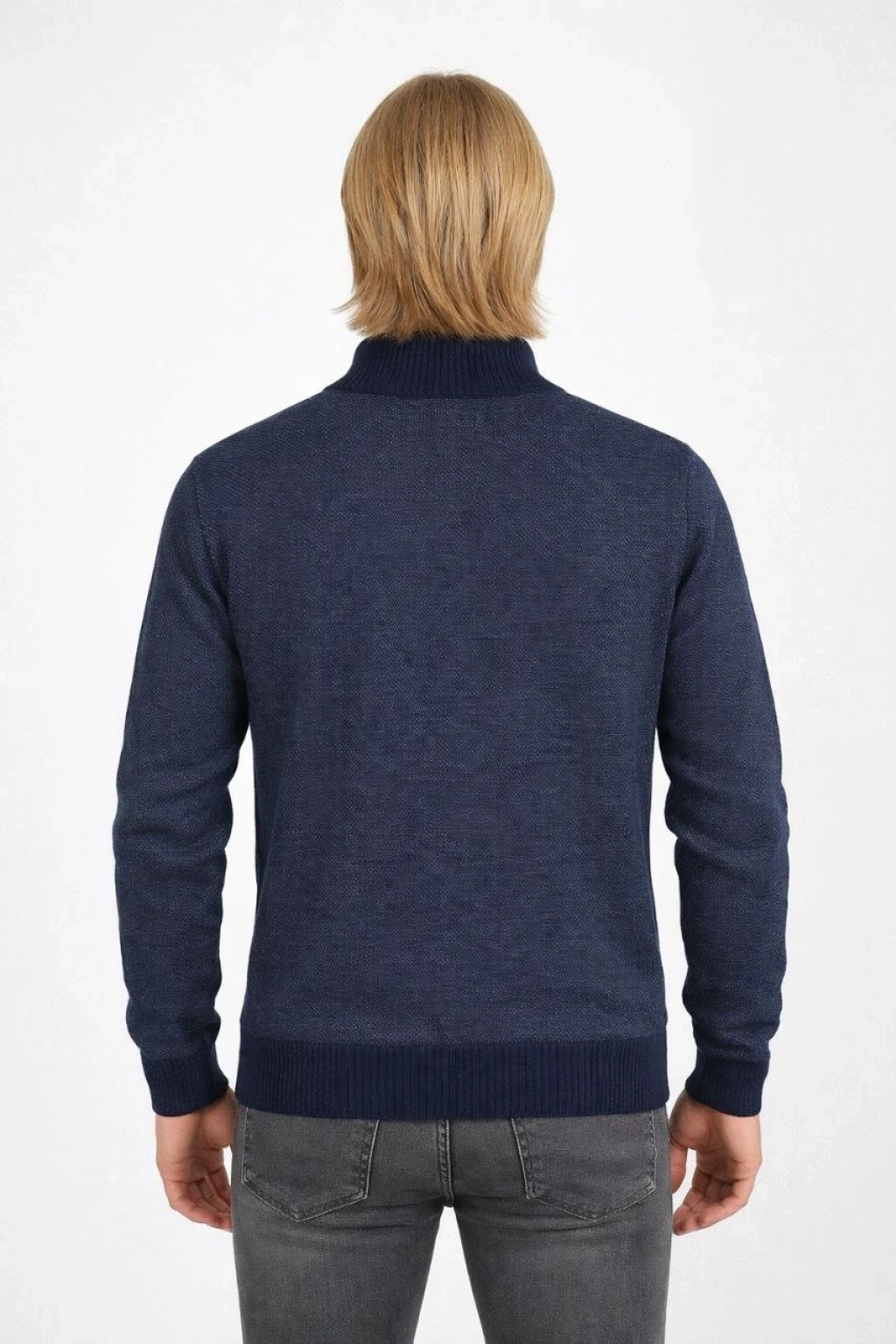 ERKEK FERMUARLI TRİKO HIRKA YÜKSEK YAKA, CEPLİ, GÜNLÜK ŞIK RAHAT KALIP TRİKO - MAVİ