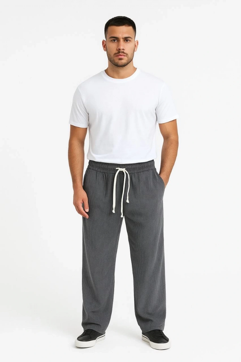 Erkek Üç iplik Kışlık Pamuklu Ovarsize Bağcıklı Düz Paça Cepli Eşofman Altı Spor Rahat Model - Beyaz