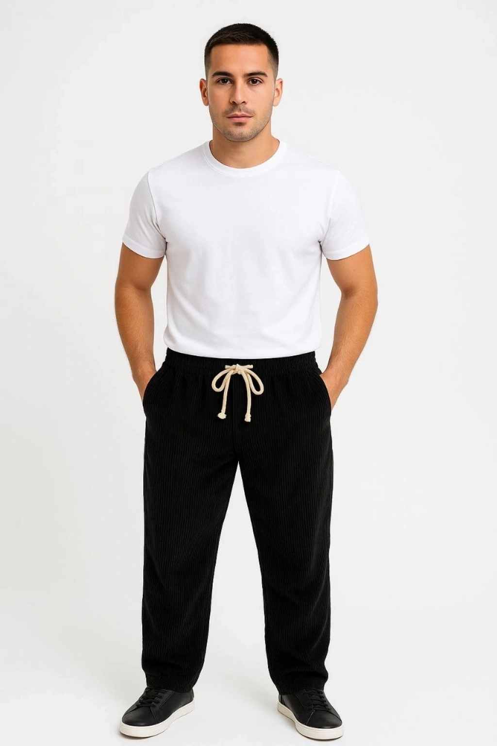 Erkek Üç iplik Kışlık Pamuklu Ovarsize Bağcıklı Düz Paça Cepli Eşofman Altı Spor Rahat Model - Beyaz
