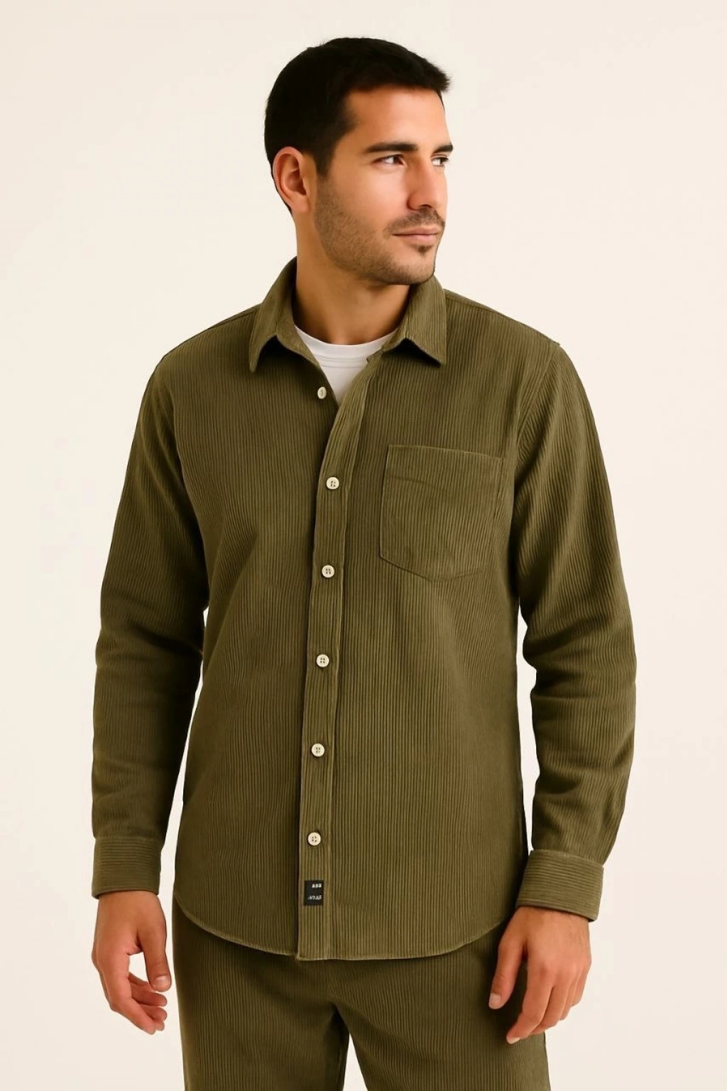 Erkek Fitilli Kadife Cepli Gömlek Oversize Rahat Kalıp - Kahverengi