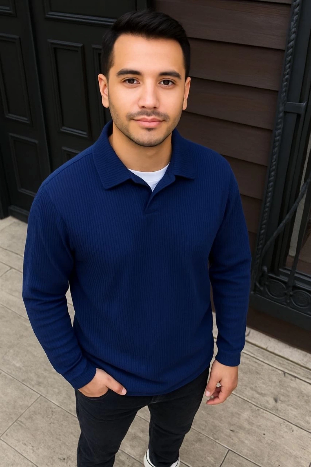 Erkek Fitilli Polar Sweatshirt – Düğmesiz Polo Yaka, Oversize Rahat Kalıp, Kalın Polar Kumaş, Kışlık ve Baharlık Şık Günlük Üst - Siyah